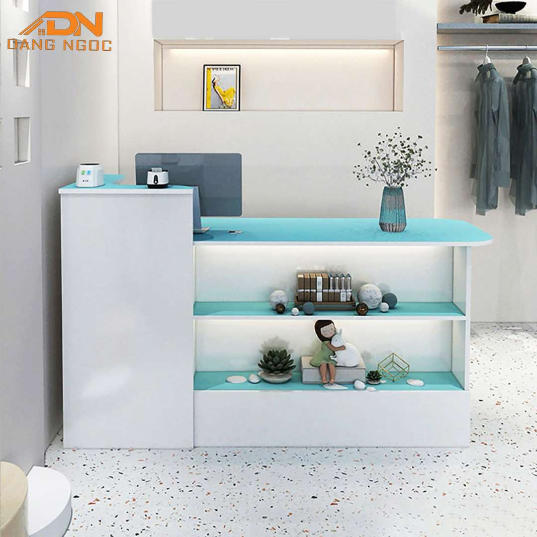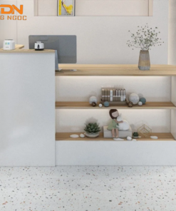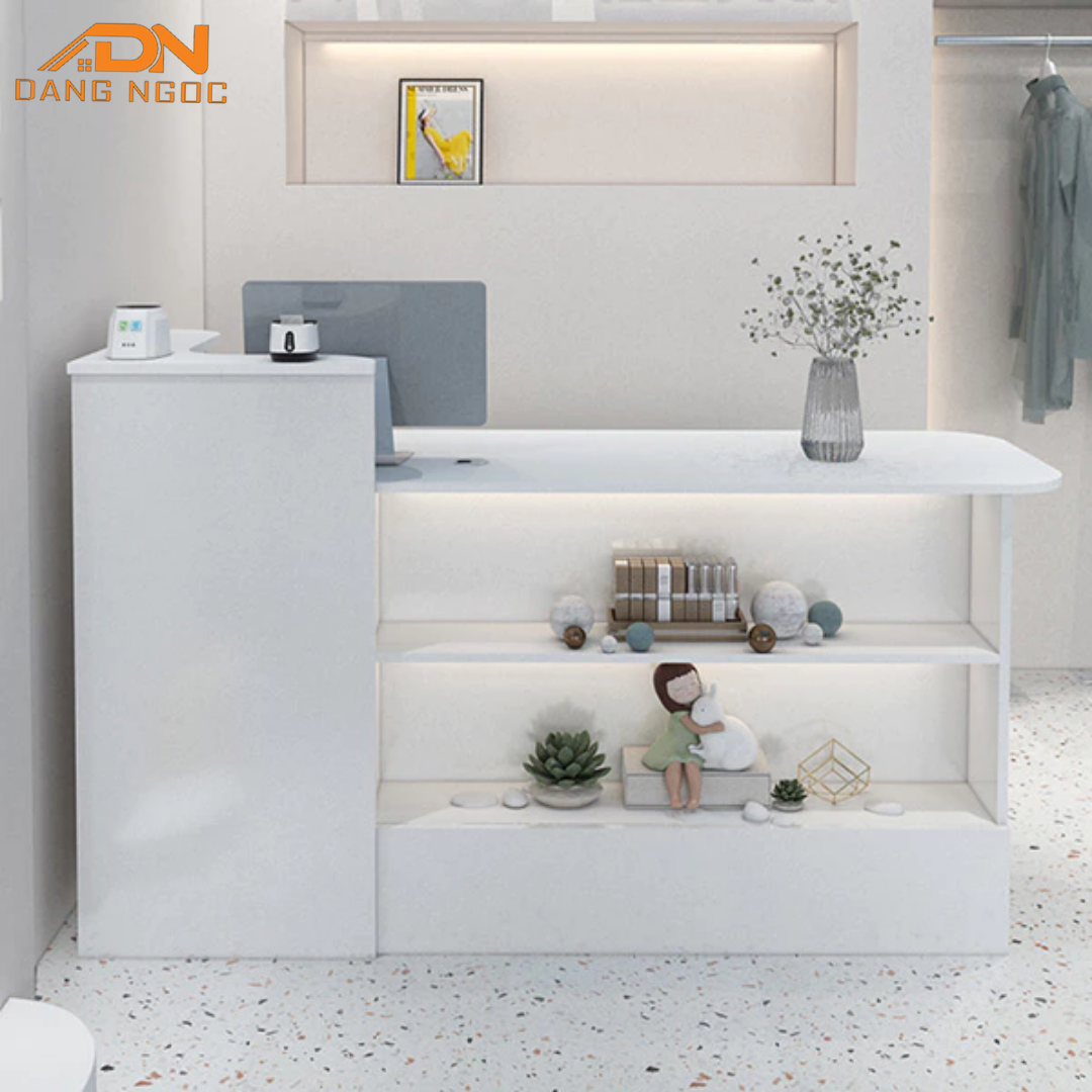 Quầy Thu Ngân Màu Trắng Tích Hợp Kệ Trưng Bày Sản Phẩm